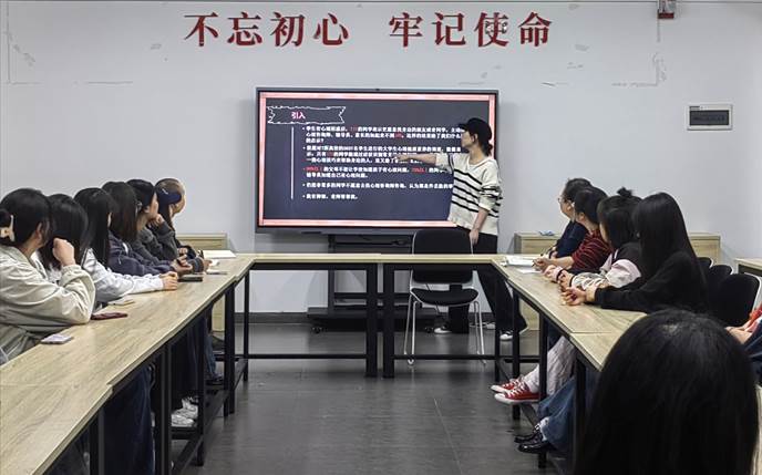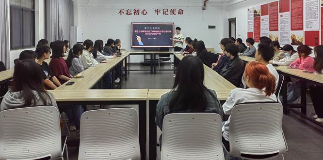为了更好的关注同学们心理健康发展状况,进一步优化我院心理健康教育与服务工作。2023年4月11日下午,手工艺术学院在教学楼201开展了朋辈心理辅导员培训,手工艺术学院党总支副书记祝李杨、全体辅导员、“匠心拙艺”特色成长辅导室相关老师
