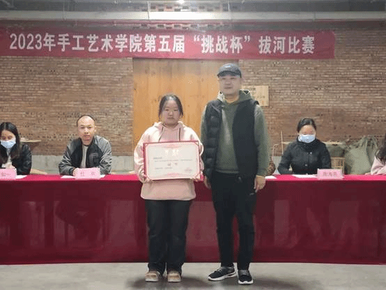 为了丰富学生们的课余文化生活,增进学生之间的交流,增强学生的凝聚力,培养学生的团队合作能力,手工艺术学院于11月23日下午开展了第五届“挑战杯”拔河比赛。