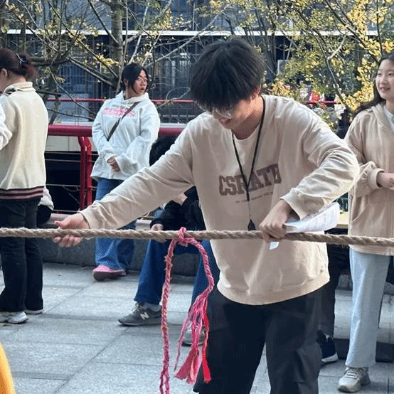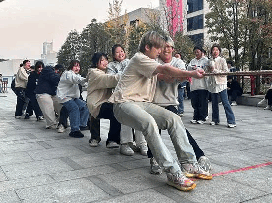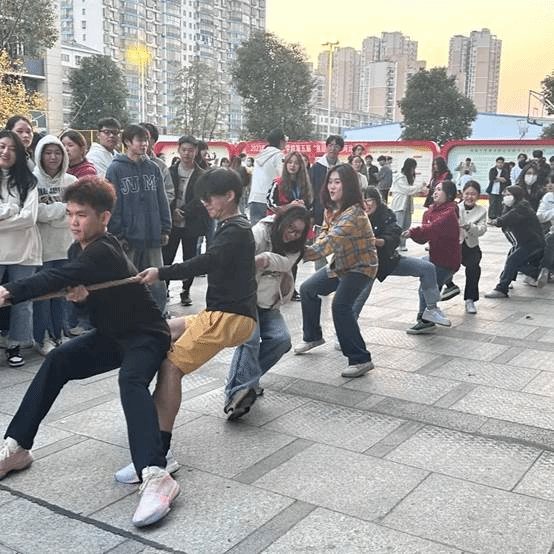 比赛现场人声鼎沸,同学们激情澎湃,随着裁判的一声哨响,参赛队员们全力以赴,紧抓绳子、压低重心、咬紧牙关,拿出了必胜的气势,用他们不服输的青春意气为我们诠释了团结的含义。