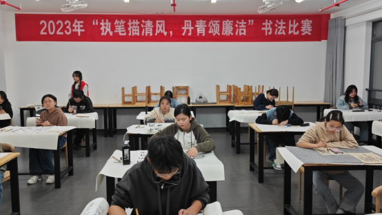 本次比赛采用软笔和硬笔两种形式进行现场书写,全体参赛选手紧扣“执笔描清风 丹青颂廉洁”主题,学子们感受着笔尖与纸张碰触的声音,用一笔一划展示着自己的才能,书写着廉洁的故事。