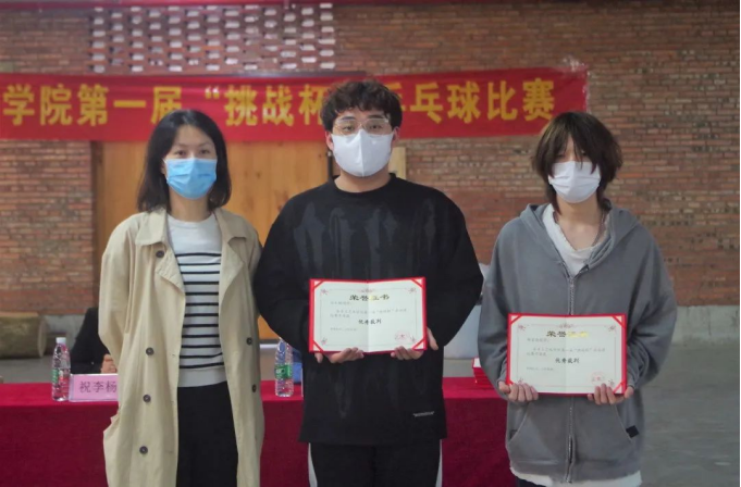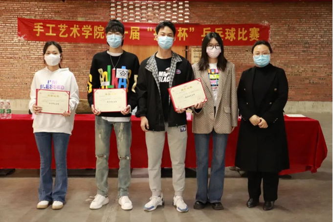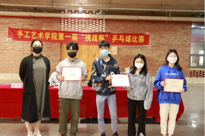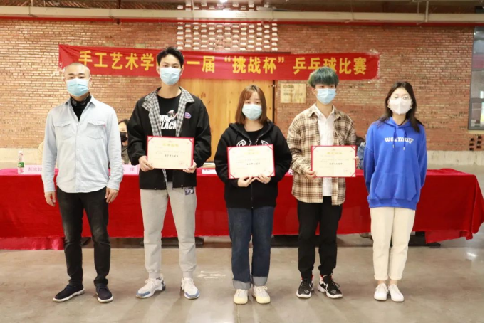 经过精彩激烈的比赛后,三大项目都分别决出了冠亚季军。学院领导和老师为所有获奖运动员颁奖,手工艺术学院第一届“挑战杯”乒乓球比赛圆满结束。