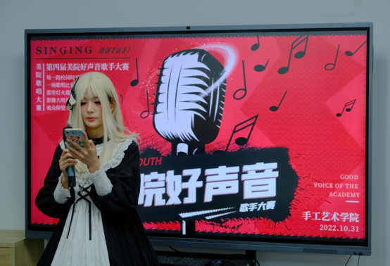 今天从一首歌去爱生活吧,青春滚烫,我们哼唱着,歌词是诗,曲谱是歌,诗传情,歌言志。手工艺术学院第四届“美院好声音”歌手大赛在10月31日举行。