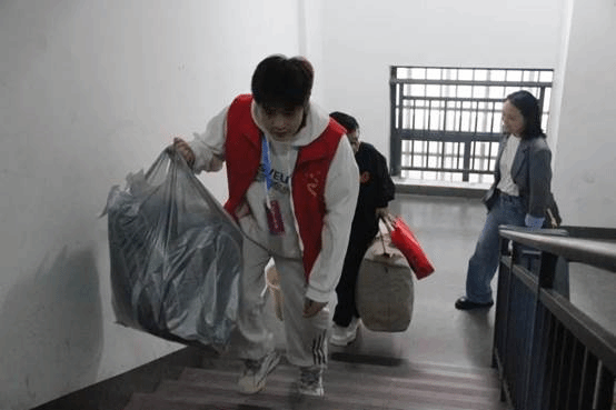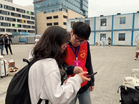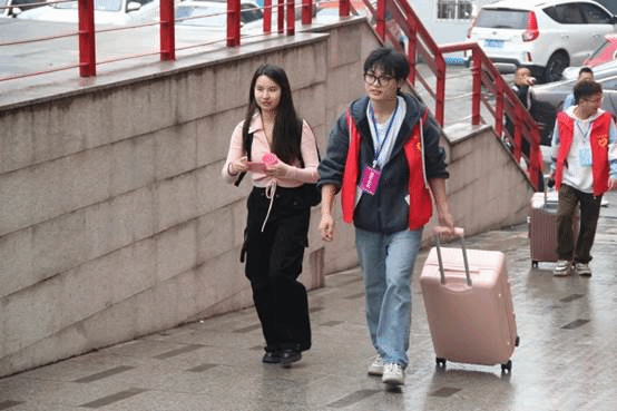 接过你的行囊,我们就是一家人!校园中无处不见红马甲的身影,学院志愿者带领新生进入学校进行行李寄存和新生报道。