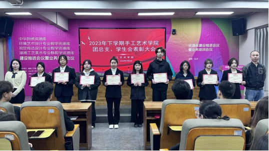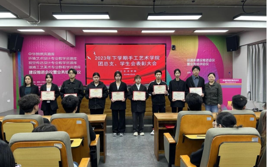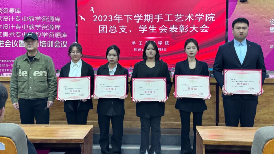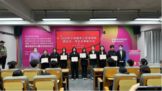 为了表彰先进,树立榜样,总结成果,凝聚力量,传播正能量,激发学院发展新活力,2024年4月8日手工艺术学院团总支、学生会表彰大会于综合楼三楼报告厅举行。出席本次会议的领导、老师有党总支书记、刘亮团总支书记、杜欢,辅导员周海燕、周如一、彭冰如 、姚梦涵 、李璐