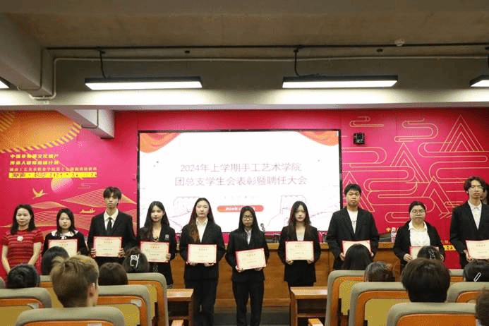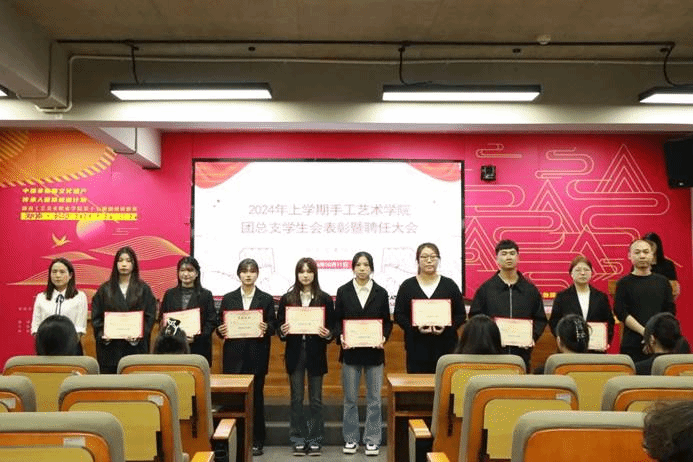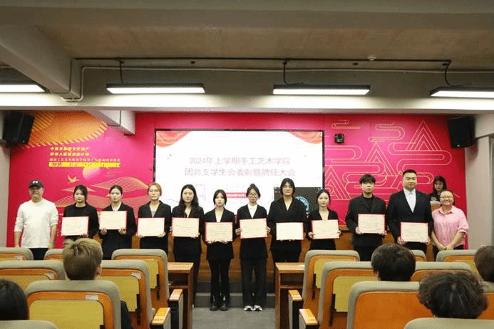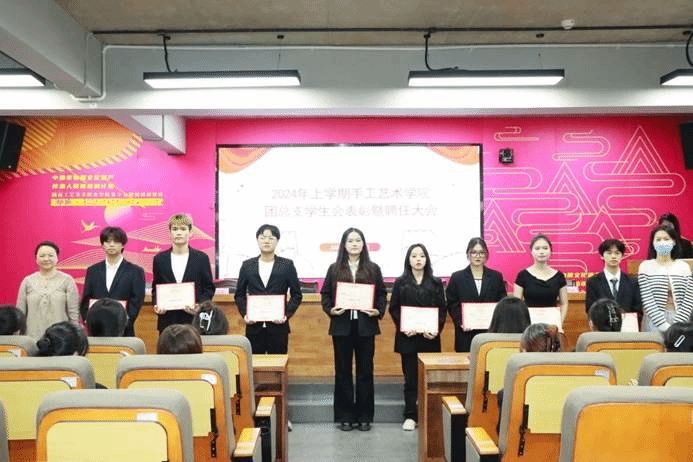 金风送爽,孕育着新时期的梦想;秋阳明媚,照亮了新征途的起点。2024年10月11日下午,2024年上学期手工艺术学院团总支、学生会表彰大会暨聘任大会于综合楼三楼报告厅举行出席本次会议的领导、老师有党总支书记刘亮、党总支副书记祝李杨、团总支书记杜欢、辅导员周海燕、周如一、彭冰如、姚梦涵。