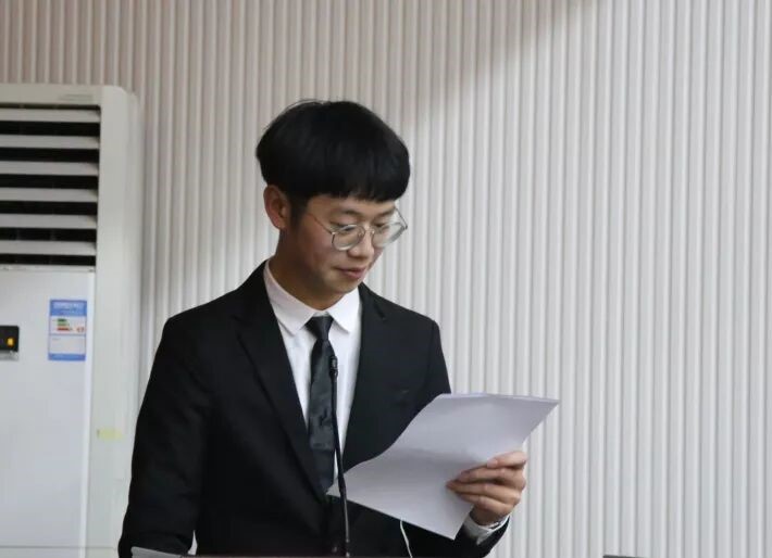 曹文杰老师说:“看到现在的你们就仿佛看到了当初大学的自己,感触很深。”并指出各部门的部长在与部门成员维持好关系的同时也要在工作中指出部员的错误并及时纠正。希望各部门的干事都要尽心尽责。新一届的学生会干事要以上一届学生会干事为榜样,吸取他们身上的优点并加以改进。在发言的最后曹文杰老师预祝大家元旦快乐。
