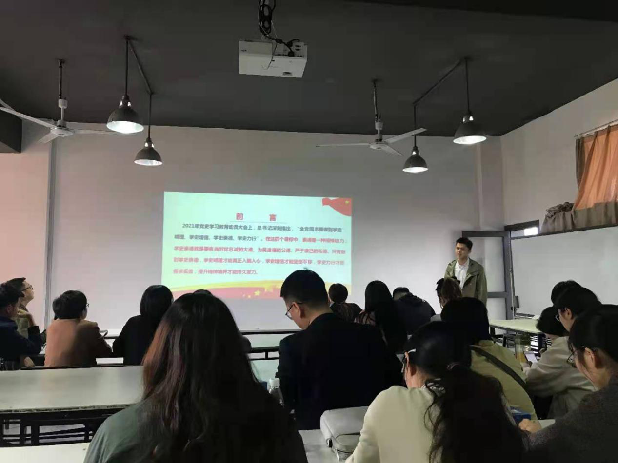 5月18日下午,在弘美楼505室组织开展了视觉传播设计学院2021年上学期第八次全院教职员工党史学习教育专题学习,总支副书记汤灿主持,全院教职员工参加了学习活动。