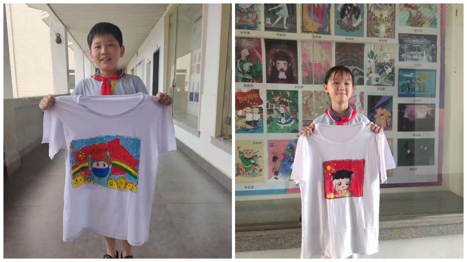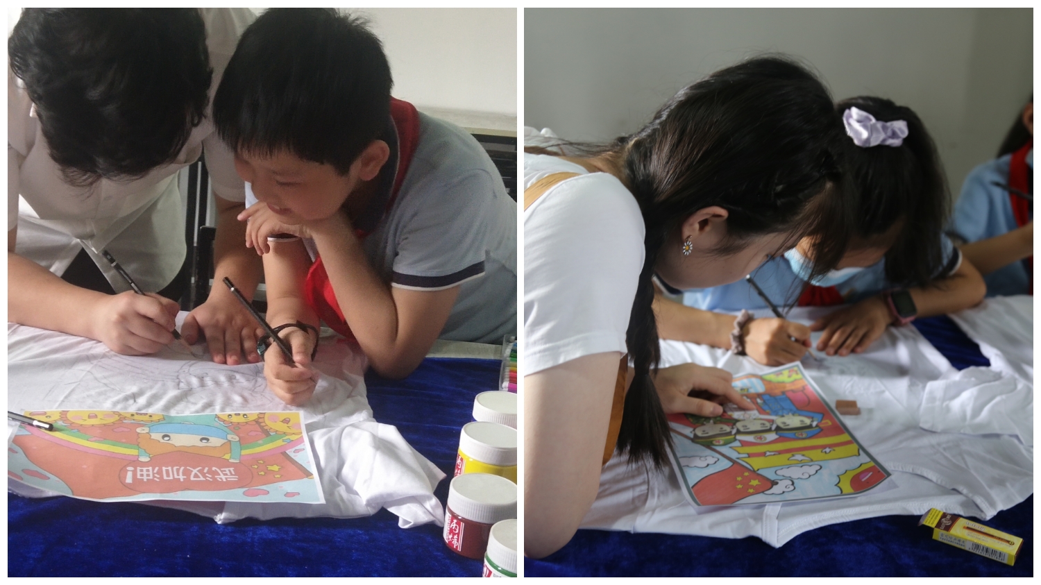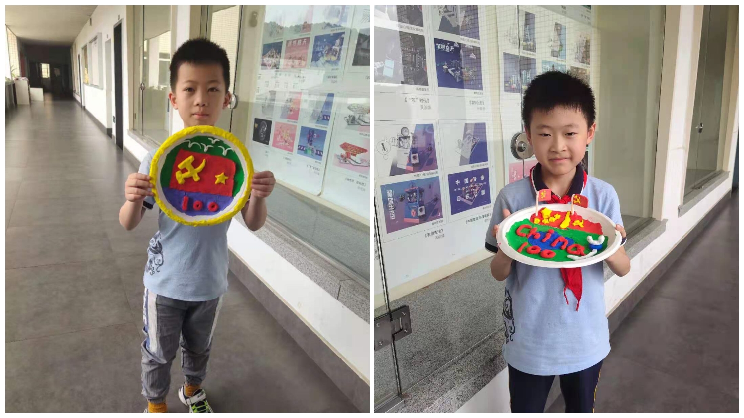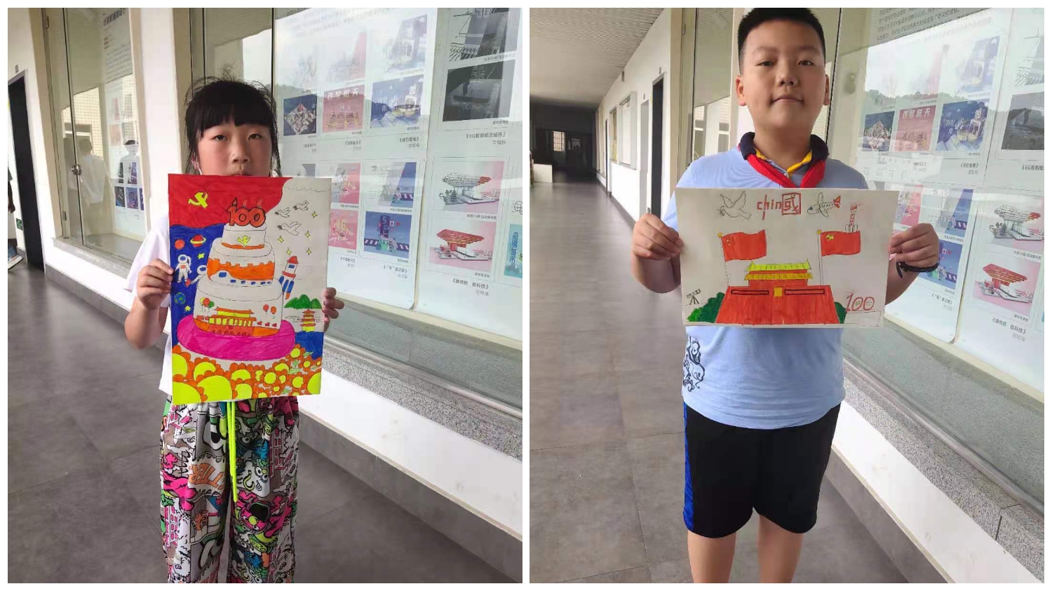 最后,我院还精心安排了以“庆祝建党100周年”为主题的手工制作红色主题设计作品环节,为学生们准备了创作材料,并设置了创意画组、创意T恤创作组、剪纸组和黏土组,按照小学生喜好,分别在弘美楼402室、403室和404室开展设计制作,视传学院部分党员师生作为指导老师全程参与。孩子们在视传学院师生党员们的指导下,结合对中国共产党的所思所感认真构思,积极开展创作,在欢乐而和谐的氛围中,孩子们有的绘出了精美的画作,有的用剪纸剪出了天安门和党徽,有的用黏土制作出了红色主题创意画。在创作过程中,孩子们增进了对党的认识和感情。