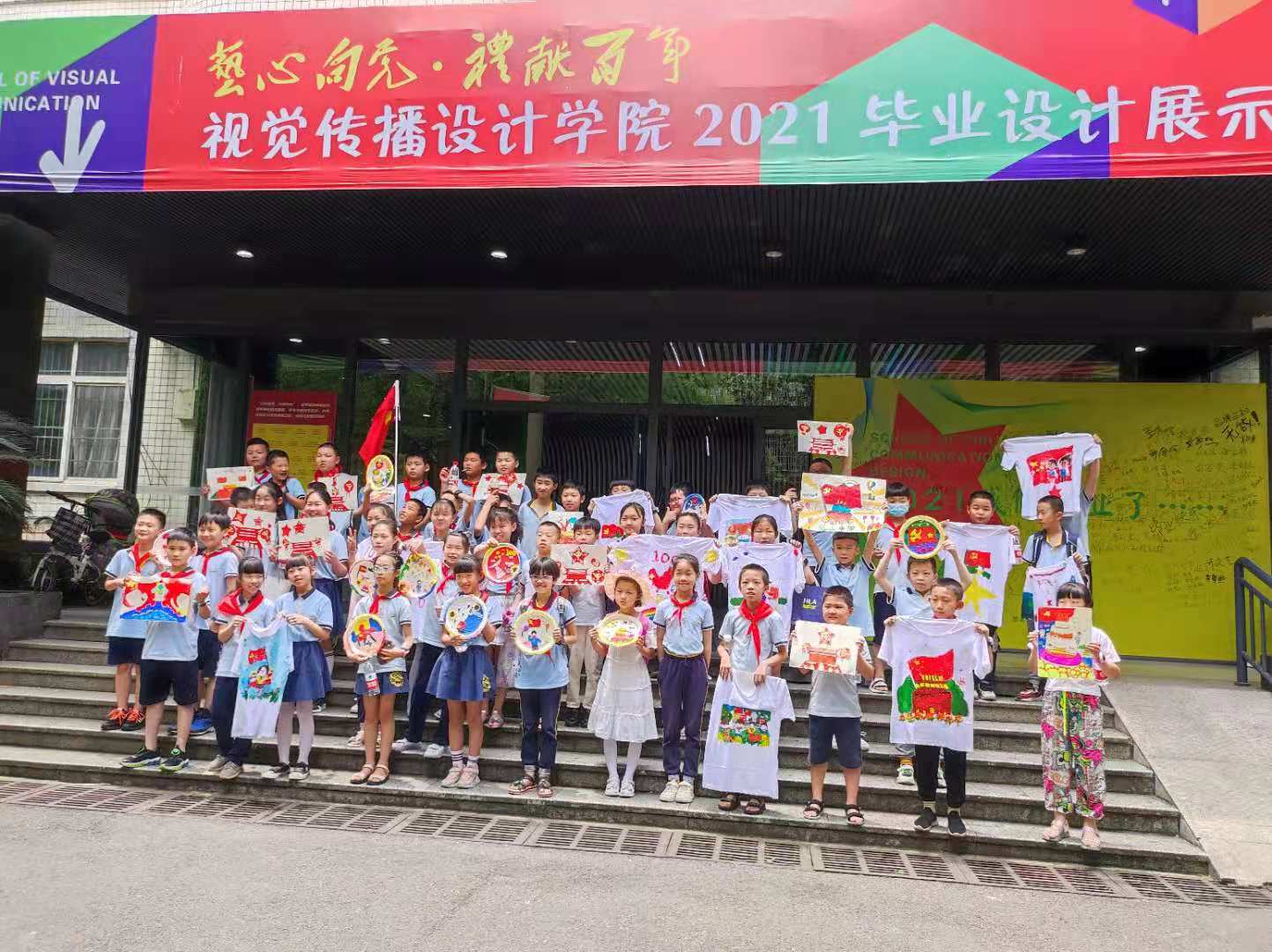 时光的指针指向6月1日,随着党的百年华诞日益临近,湖南工艺美院毕业设计开放周与一年一度的“六一”国际儿童节不约而至,视觉传播设计学院迎来了龙洲小学1705中队的五十余名师生,共同参加该院党总支举办的“传红色基因,塑美育少年”参观交流主题活动。