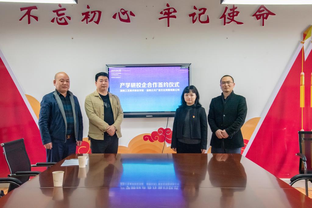 视觉传播设计学院、益阳云天广告文化传媒有限公司本着提高教学质量、提升社会服务水平、满足产业需要的原则,在互惠互利、共同发展的基础上,建立全面的产学研合作关系。根据协议,双方就技术人才培养、社会实践、科学研究、成果转化等多方面,开展深度合作,协同发展,共同为地方发展贡献力量。