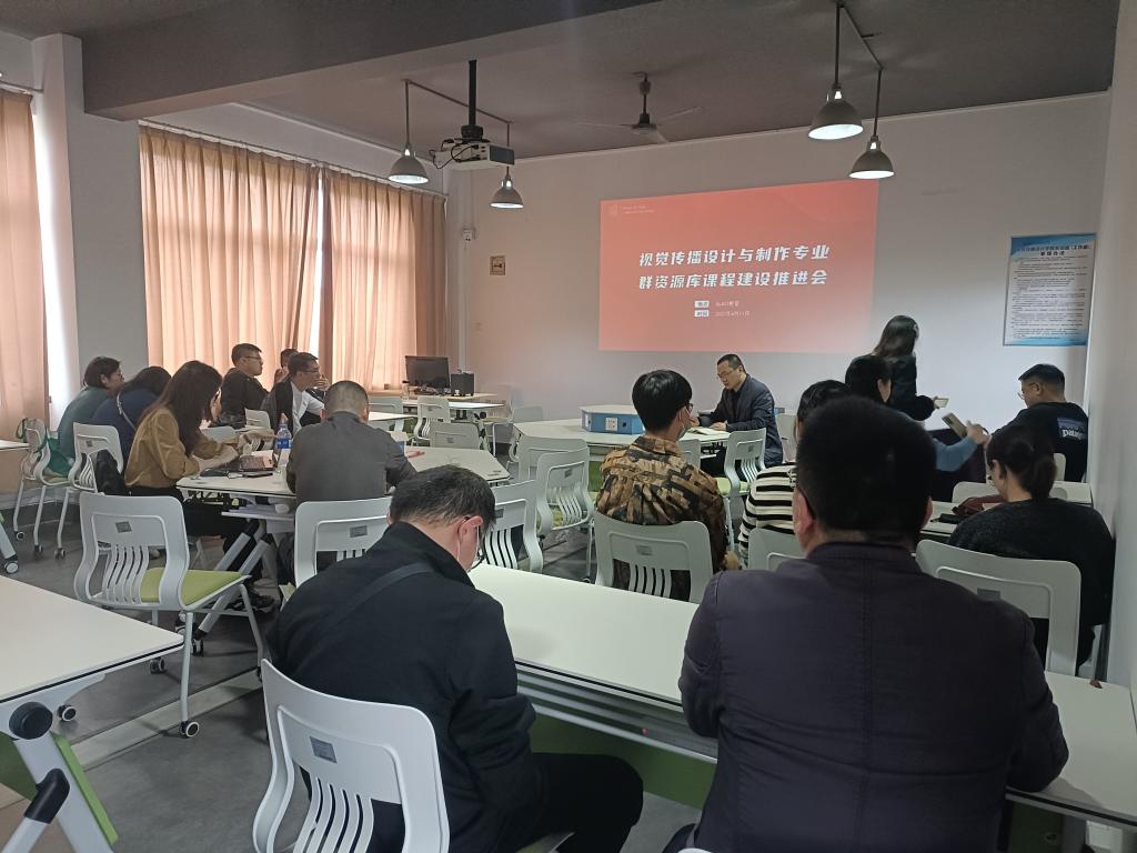 为提升我院专业及精品课程建设水平,进一步推进我院省级资源库视觉传播设计与制作专业群资源库建设,4月11日下午五点,“视觉传播设计与制作专业群资源库推进会”在弘美楼403举行,会议由视觉传播设计学院副院长董效康主持,资源库微课拍摄公司工作人员及我院参与资源库子项目课程建设的近三十名老师参加了会议。