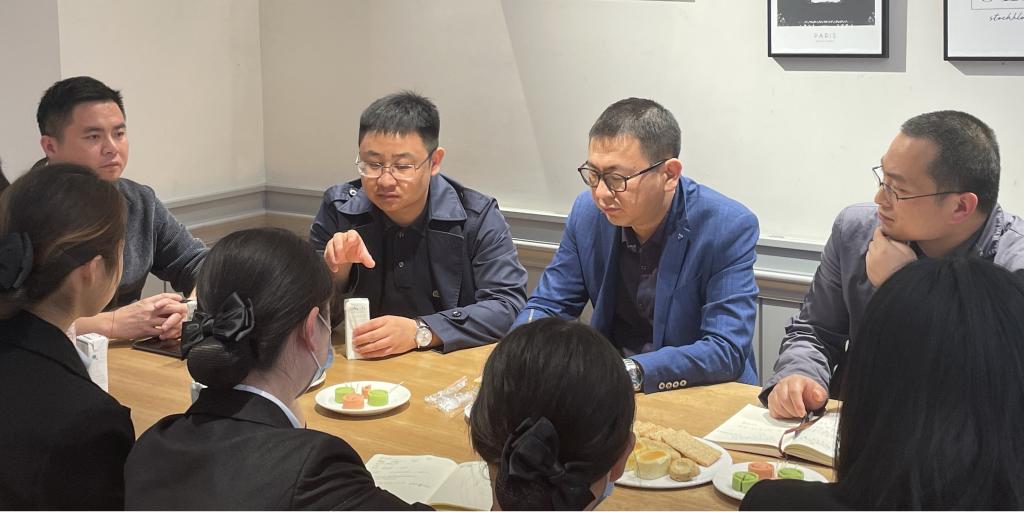 此次走访调研以座谈会形式开展,校企双方进行了亲切交谈。湖南麦香缘食品有限公司黄华之经理介绍了在此实习的学生及指导她们的师傅;湖南麦香缘食品有限公司刘东总经理介绍了企业的发展历程和门店发展定位,给在此实习学生提出了管培生岗位发展要求。
