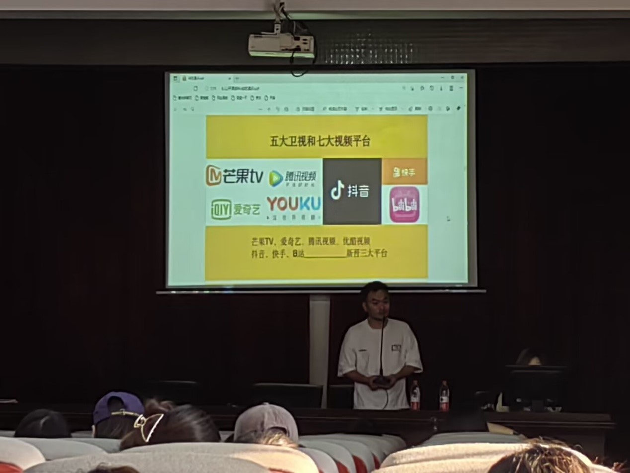 宣讲之余,来自中广天择的邓瑞龙,结合自身经历,带来了关于综艺节目通识内容的分享。从国内外综艺节目的发展和特点、电视综艺节目的四个发展阶段、网络视频综艺节目的四个阶段等方面,介绍了五大卫视、七大视频平台,以及从求职招聘的人生选择到拍摄与后期制作的行业选择。随后,养丰人团队其他成员补充分享了综艺节目后期制作的流程和特点。