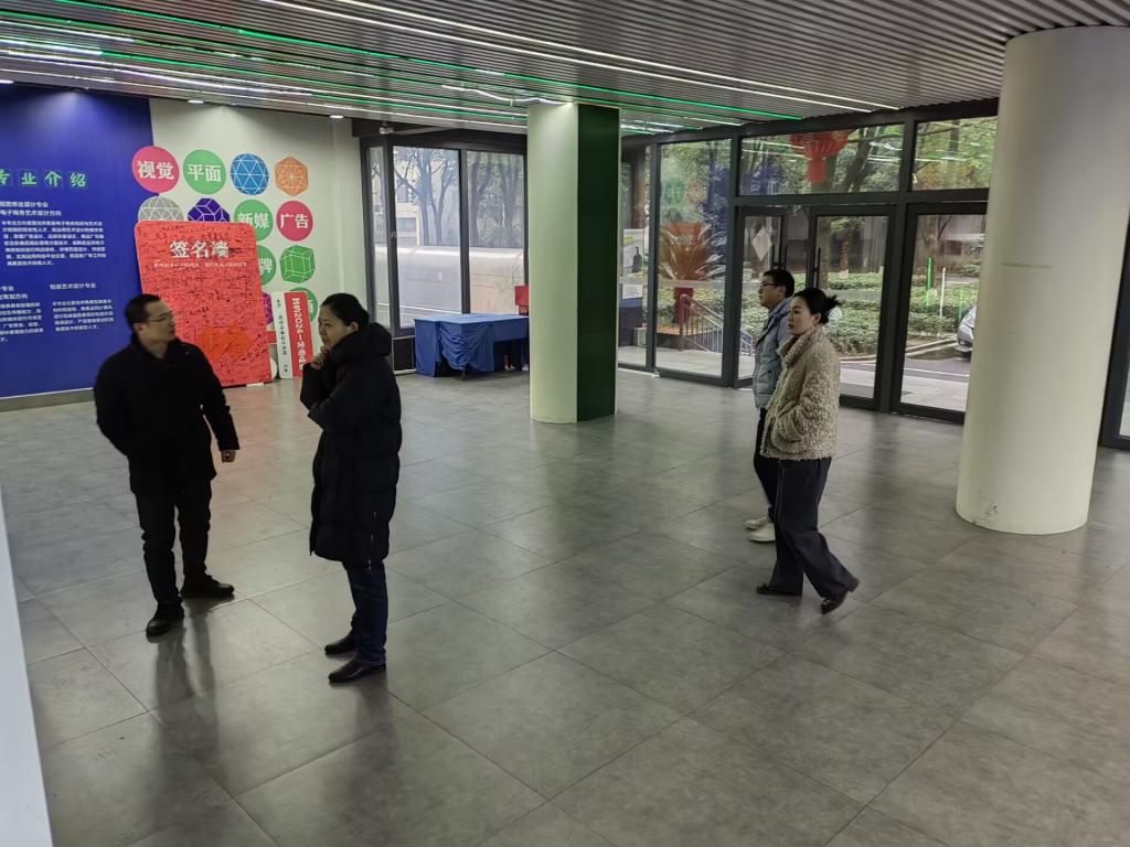 为做好岁末年初安全管理,确保学院教学场所安全稳定,在1月25日下午的期末总结大会结束后,视觉传播设计学院党政领导开展了学院教学场所安全大检查活动。检查组对弘美楼各教室、实训室、工作室、办公室等进行了用水、用电、实训设备、消防等安全大排查,对各层橱窗展览、一楼大厅的布展陈列等进行了研究讨论,同时对存在的安全隐患进行了分析研判。