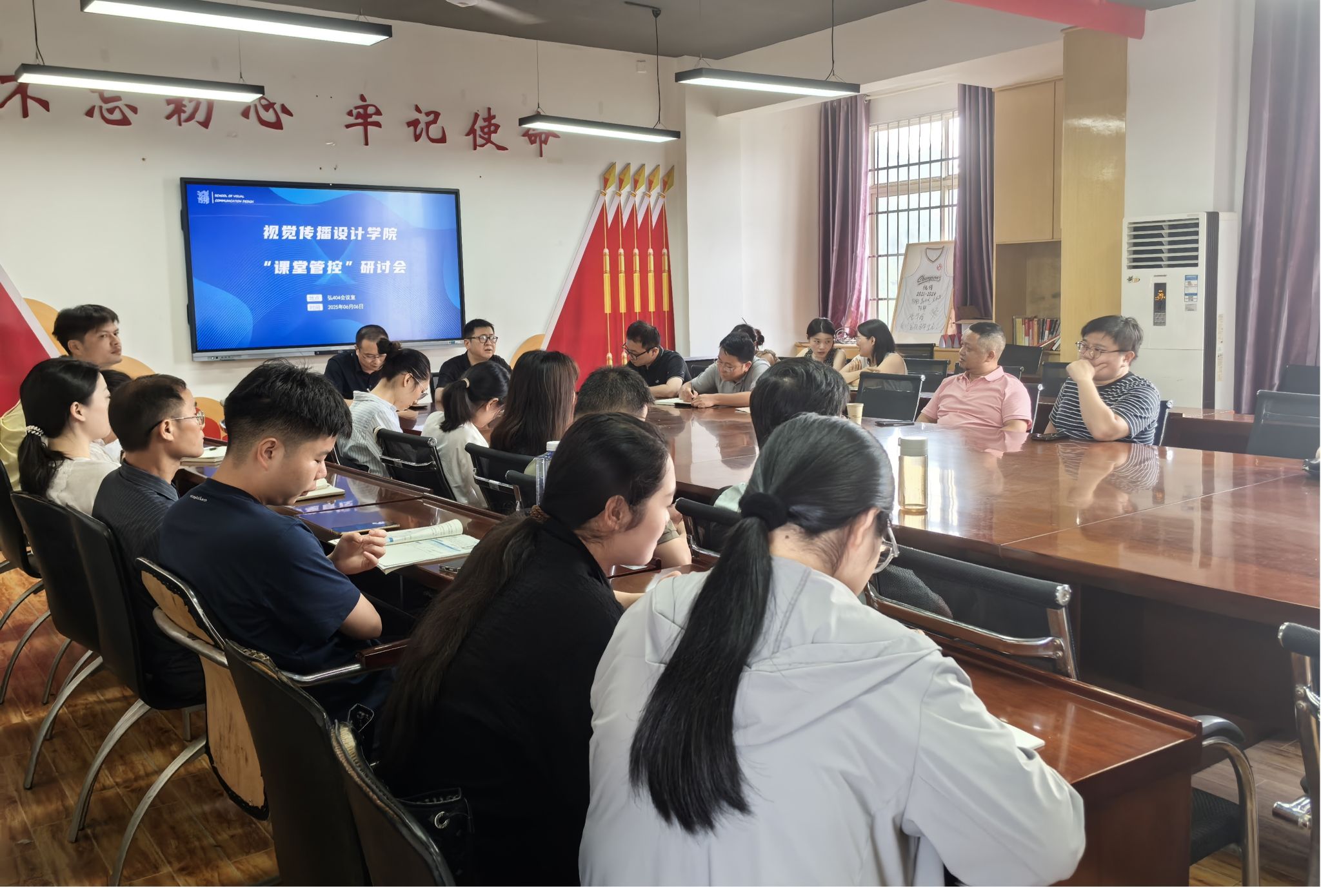 为加强课堂管理、优化学风建设,提升教育教学质量,视觉传播设计学院于6月6日在弘美楼404室组织召开“课堂管控”研讨会。学院领导、专任教师及学生工作相关负责人参加会议,共同探讨课堂管理新思路与新举措。