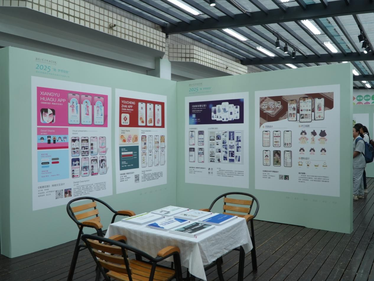 学院始终秉承“艺术服务社会,设计赋能产业”的理念。本次展览中,诸多作品紧密结合湖湘特色与时代需求,如以乡村振兴为主题的农产品包装系统设计、以湖南非遗技艺为灵感的品牌活化方案以及聚焦新媒体场景的互动广告实践等。这些作品不仅体现了学生对本土文化根脉的坚守,更展现了他们将传统元素转化为当代设计语言的能力,是学院产教融合教学模式的生动体现。