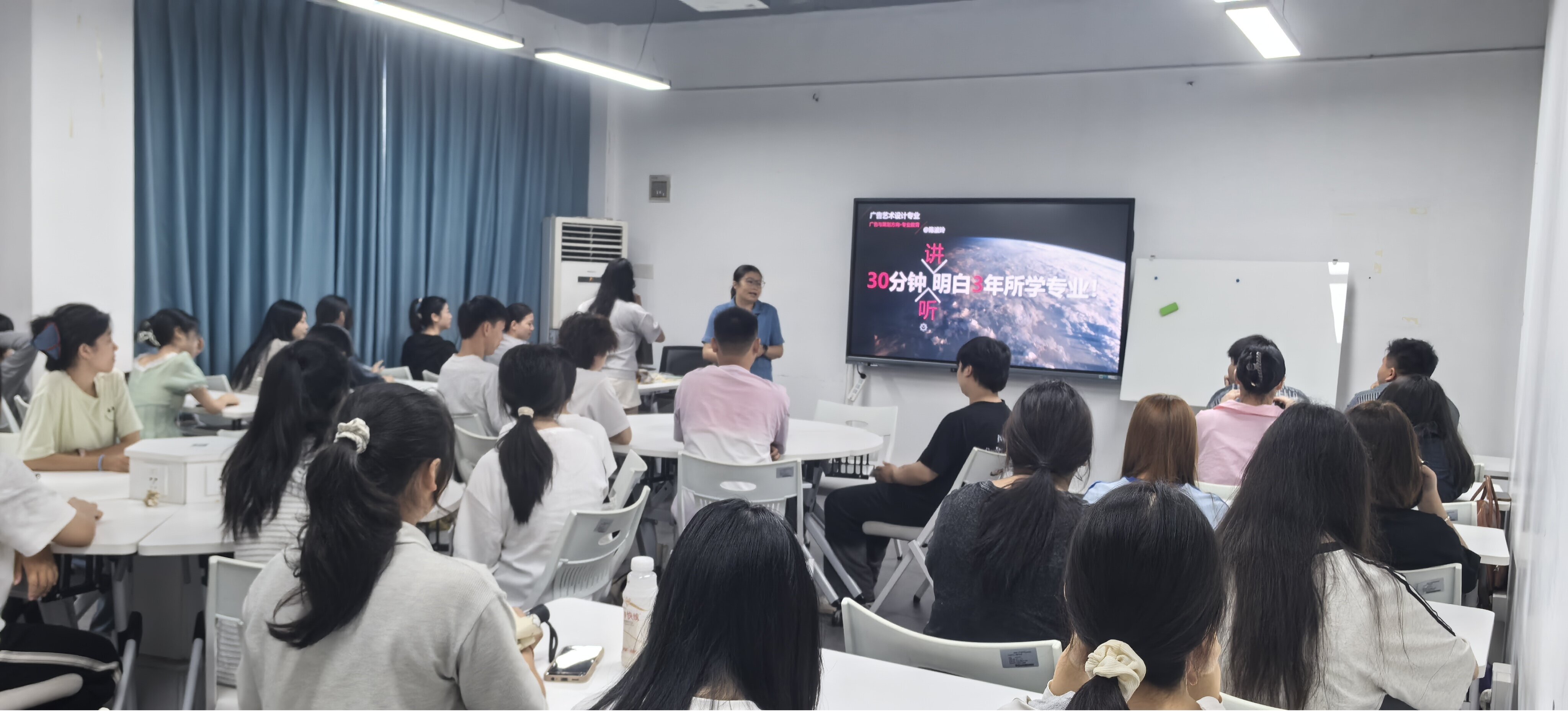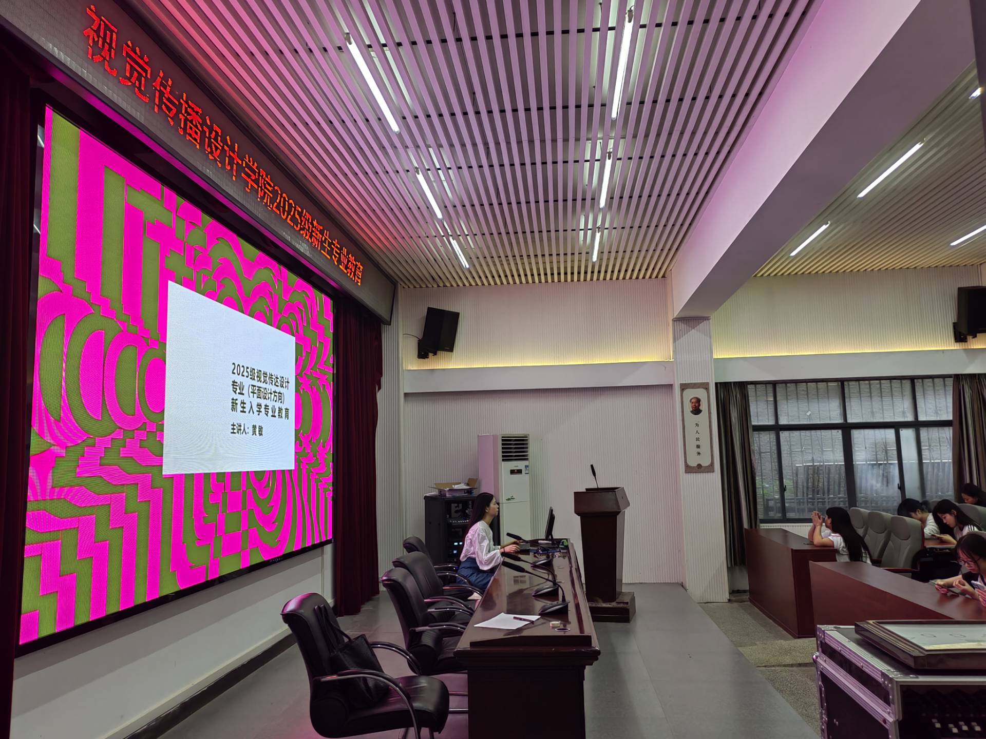 9月18日上午,视觉传播设计学院在弘204、蕴104举行2025级新生专业教育。来自全国各地涵盖视觉传达设计、广告艺术设计、包装艺术设计、包装工程技术、数字媒体技术等专业的六百五十多名2025级新生,共同参加了入学第一课,接受专业化、职业化启蒙教育。