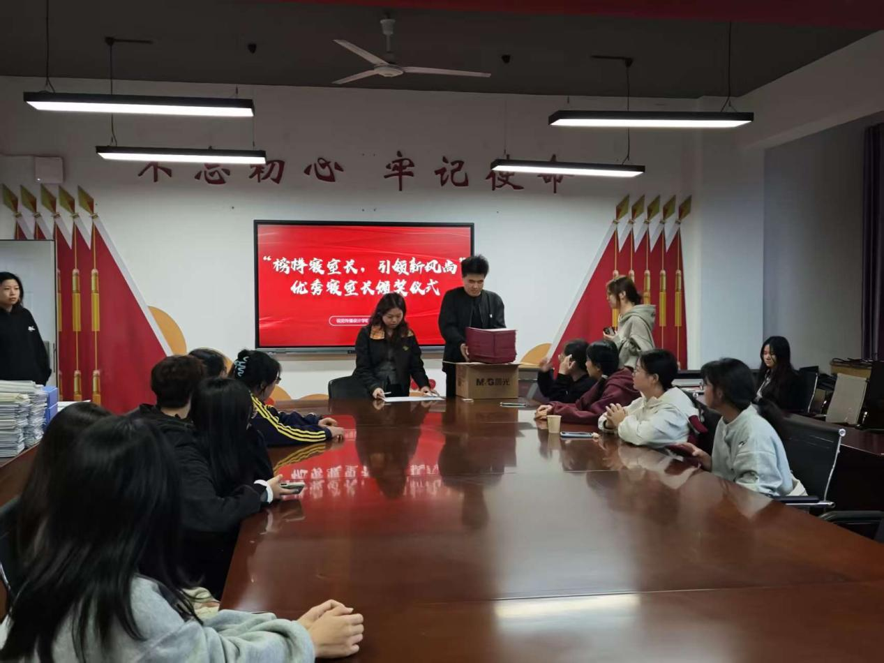 11月5日下午,视觉传播设计学院“榜样寝室长,引领新风尚”优秀寝室长颁奖仪式在学校弘美楼404会议室举行,视觉传播设计学院学生第二党支部书记、学工办主任、辅导员张亚光出席颁奖仪式,并为获奖寝室长逐一颁发荣誉证书。