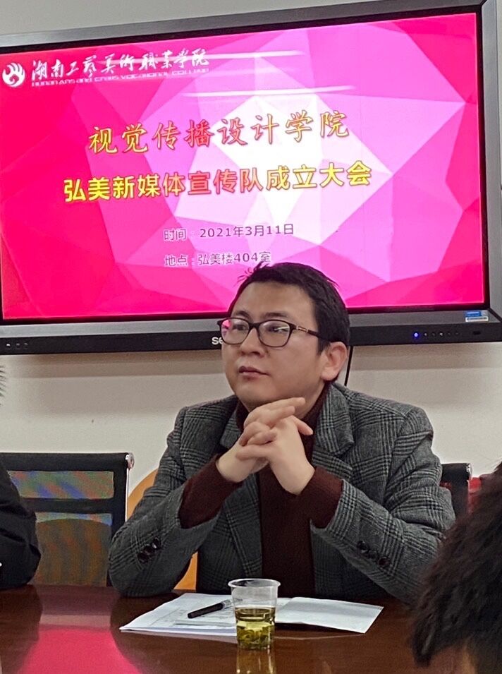 3月11日下午,视觉传播设计学院“弘美”新媒体宣传队成立大会在弘美楼404会议室召开,会议由学院党总支副书记汤灿主持,院长黄璜、党总支副书记葛慧、就业专干彭浩、全体辅导员和宣传队成员参加会议。