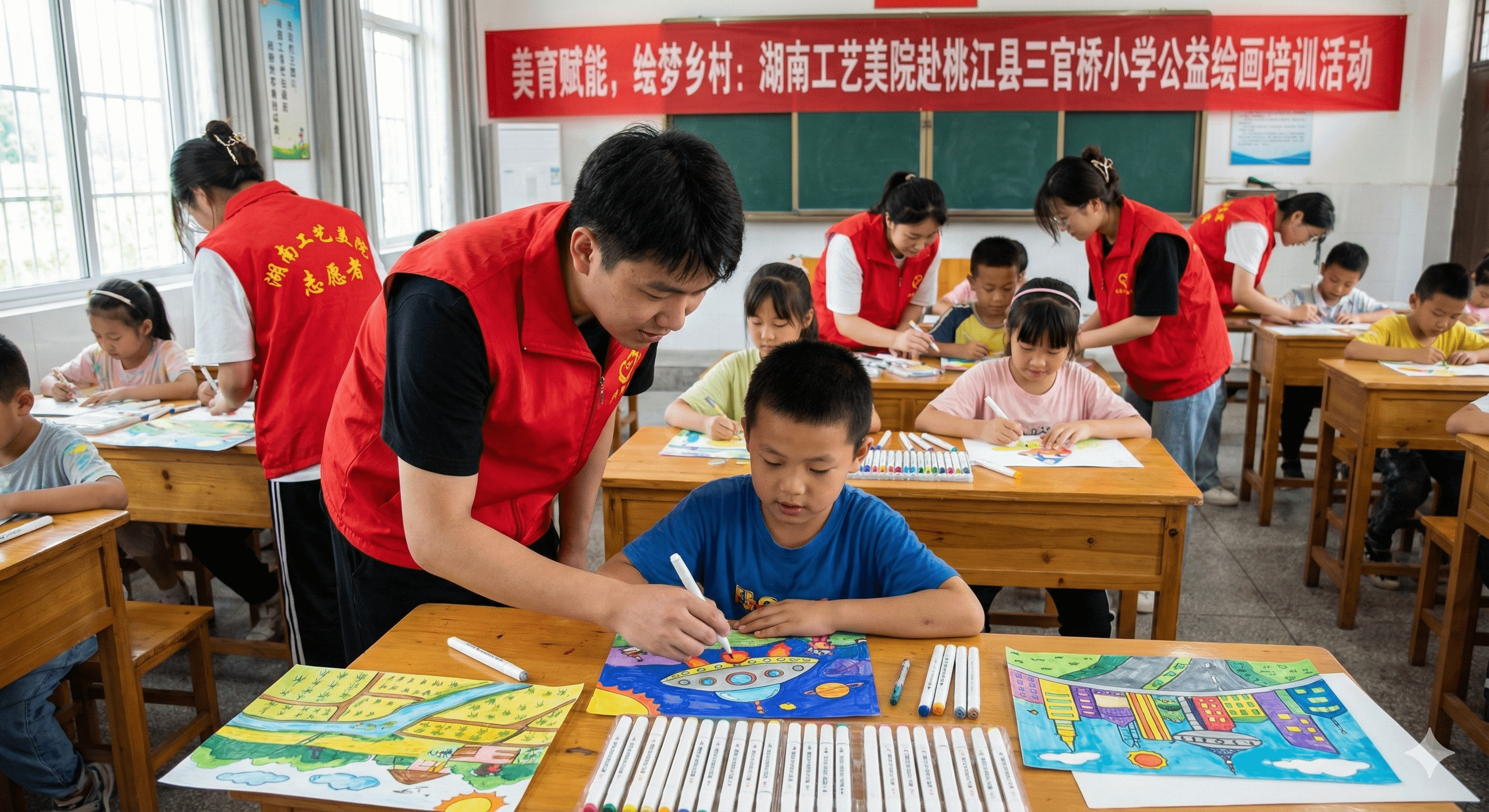 美育赋能,绘梦乡村:湖南工艺美院师生赴桃江县三官桥小学开展公益绘画培训
