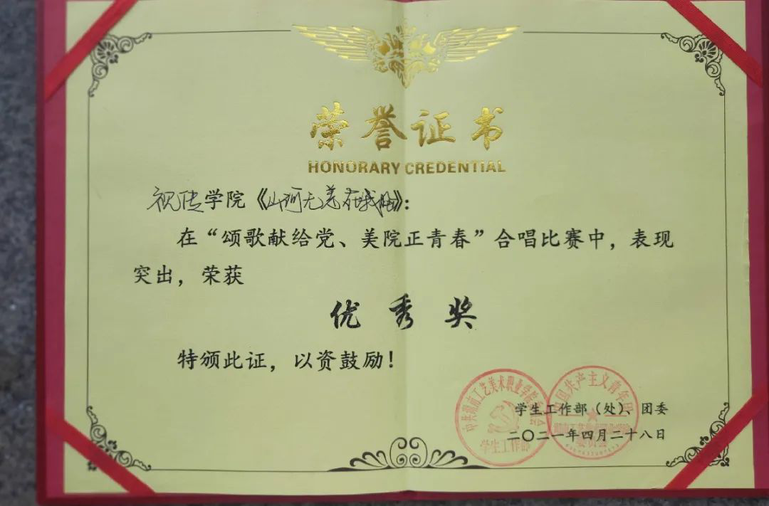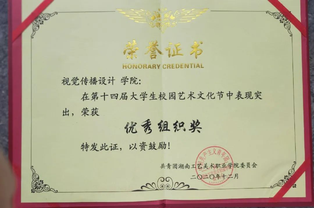 歌伴舞《战疫》荣获一等奖、情景舞《重生》三等奖;荣获学校授予的第十四届校园文化艺术节“优秀组织奖。