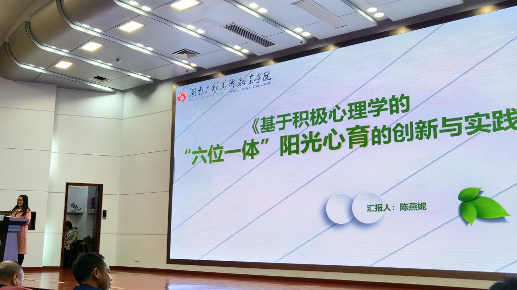 本次大会以“深耕专业 育心育人”为主题,旨在大力促进我省高校心理育人工作,实现心理健康教育提质增效。我校作为三所高校代表之一在大会上分享心理育人工作经验,心健中心专职教师陈燕妮在大会上做《基于积极心理学的“六位一体”阳光心育工作体系的研究与实践》专题报告,从教育部心理育人精品项目建设的角度介绍学校阳光心育工作体系的运行情况、典型经验和取得的成果。