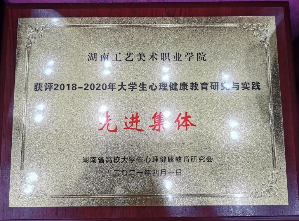 表彰大会上,学校荣获2018-2020年度湖南省大学生心理健康教育研究与实践“先进集体”,心理育人案例《阳光心态 “疫”路同心——疫情防控下的 大学生空中心理课堂》《阳光心育成就学生阳光人生——积极心理学“六位一体”阳光心育工作体系的创新与实践》《心育活动百花“艳” 艺术院校特色“美”——探索“心育+”美院“同心圆”育人新模式》分别荣获湖南省高校“心理育人”优秀工作案例一、二、三等奖。