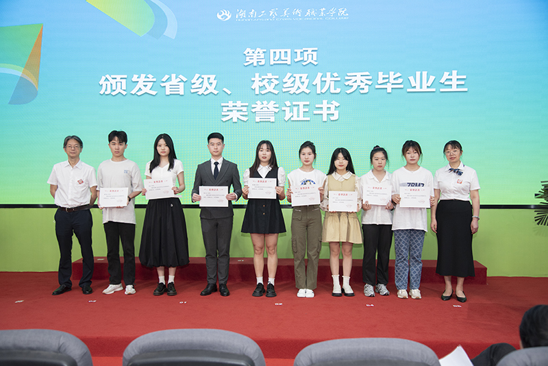 陈鸿俊、夏能权为获得省级、校级优秀毕业生的学生代表颁发荣誉证书