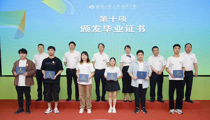 典礼现场,校领导为毕业生代表颁发毕业证书并合影留念。最后,师生同唱歌曲《光阴的故事》《再见》,悠扬的旋律浸润着每一位毕业生的心灵,唱出了对母校的浓浓眷恋和对师友的依依不舍。