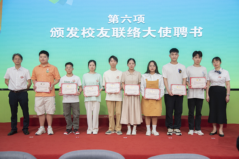 陈鸿俊、夏能权为获得省级、校级优秀毕业生的学生代表颁发荣誉证书,为校友联络大使颁发聘书。