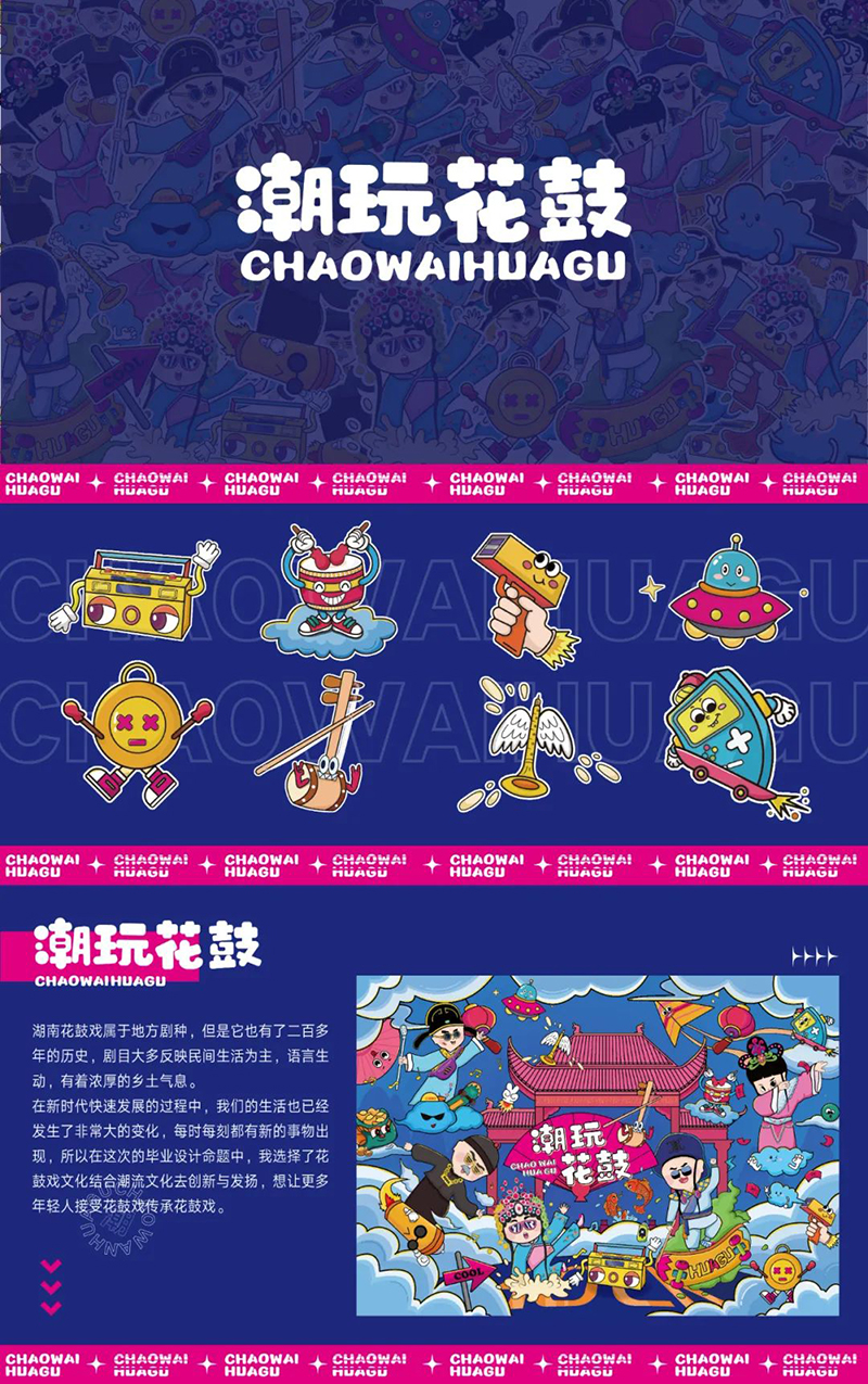 “平面设计需要美术基础,零基础学习平面设计的难度较大。”在鲁宁曾经带过的众多学生中,有一名非美术生,进入学校后开始零基础学习平面设计,鲁宁不惜牺牲自己的节假日休息时间对该学生进行指导,从最基础的专业技能开始,鲁宁带着她一步一步地学,在反复的训练和实践中,这名学生的专业能力也日渐提高。在该学生的毕业设计原创插画绘制过程中,从草图到绘制、再到最后上色,鲁宁都严格要求、全程把关。最终,这名零基础学习平面设计的学生创作出一套优秀的毕业设计作品,并且在毕业后进入一家教育出版单位担任插画设计师。课堂教学中,鲁宁会坚持为学生梳理专业课程的重点内容,遇到专业能力不足、学习积极性不高的学生,会重点指导他们完成课后作业,了解他们的学习瓶颈,不断提升他们的专业能力。在鲁宁看来,作为一名合格的教师,就应该以激发学生的学习积极性为主,善于启发每一个学生的设计思维。2022年8月,鲁宁指导学生王婷创作的作品《潮玩花鼓文创设计》荣获中国包装创意大赛二等奖。
