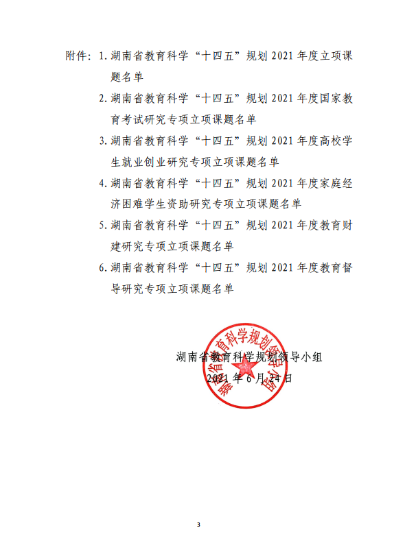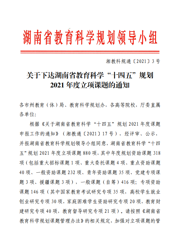 2021年湖南省教育科学“十四五”规划省级青年资助专项