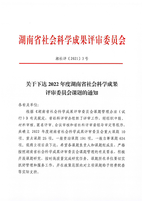 2022年度湖南省社会科学成果评审委员会课题
