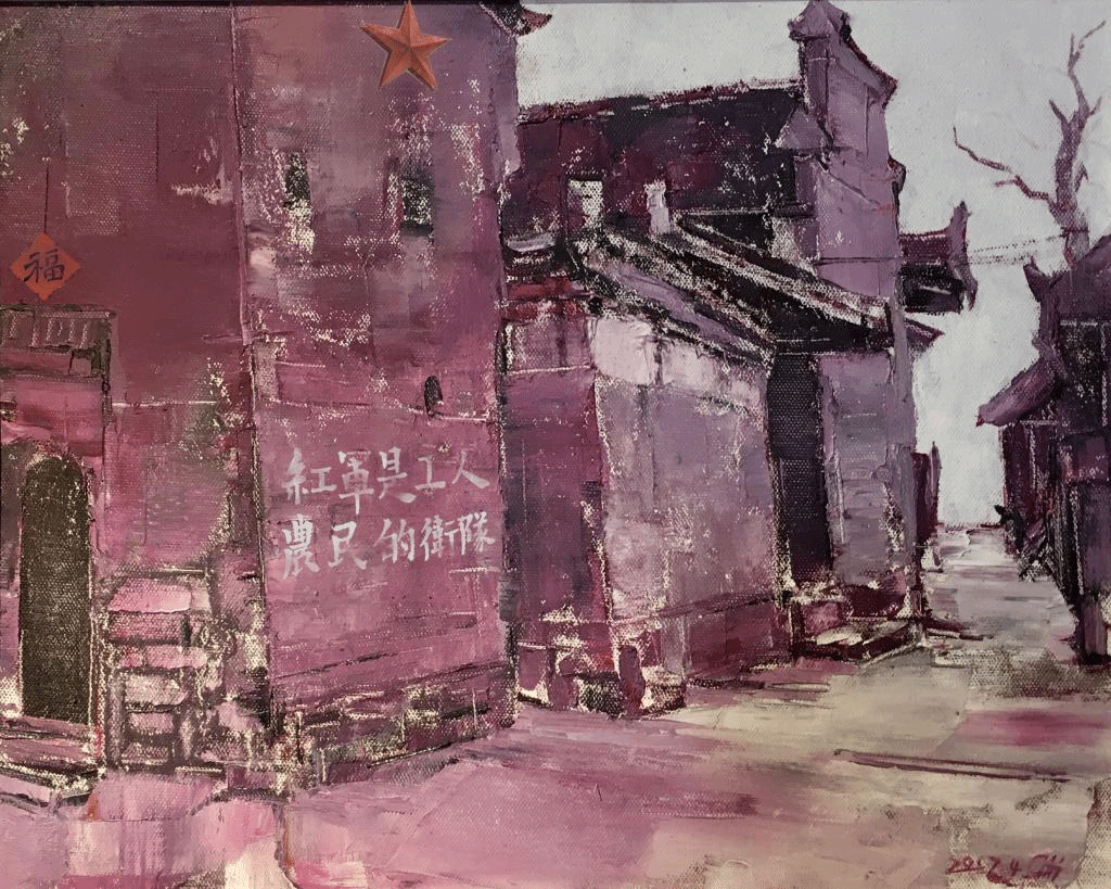 李利华老师带领2名学生刺绣作品《血色湘南》