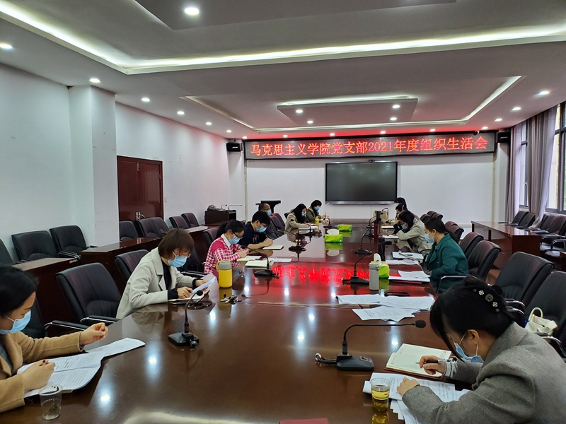 2022年3月29日,马克思主义学院党支部在致美楼201会议室召开2021年度组织生活会。支部书记王芳主持会议,马克思主义学院党支部全体党员参加会议。机关党总支书记谢志杰到会指导。