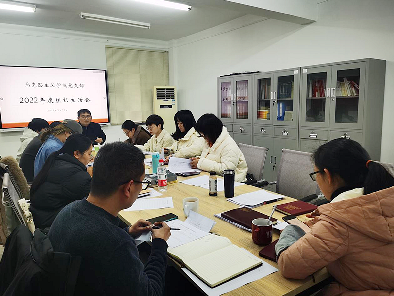 2月22日下午,马克思主义学院党支部在党员活动室召开2022年度组织生活会。机关党总支书记、组织人事处副处长谢志杰到会指导,支部书记王芳主持会议,支部全体党员参加。