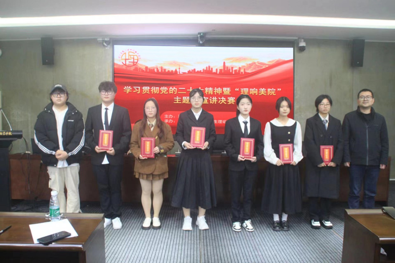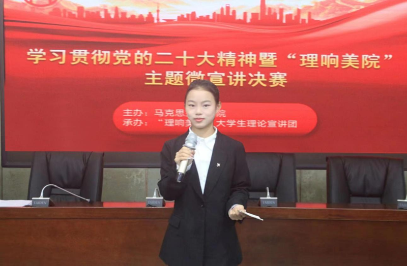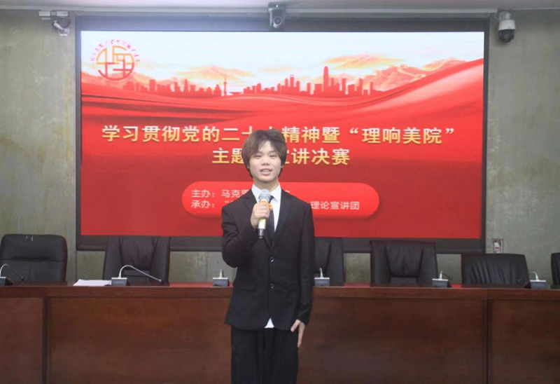 选手们紧扣党的二十大精神,以“乡村振兴”、“文化传承”、“廉洁教育”、“数字经济”等为切入点,结合自身学习、生活的经历和感悟,用生动的语言、鲜活的事例、真挚的情感、多样的形式展现所学所思所悟。宣讲比赛加深了青年学子对党的二十大精神的领悟,展现了美院学子一心向党、锐意进取的良好精神风貌和青春风采。