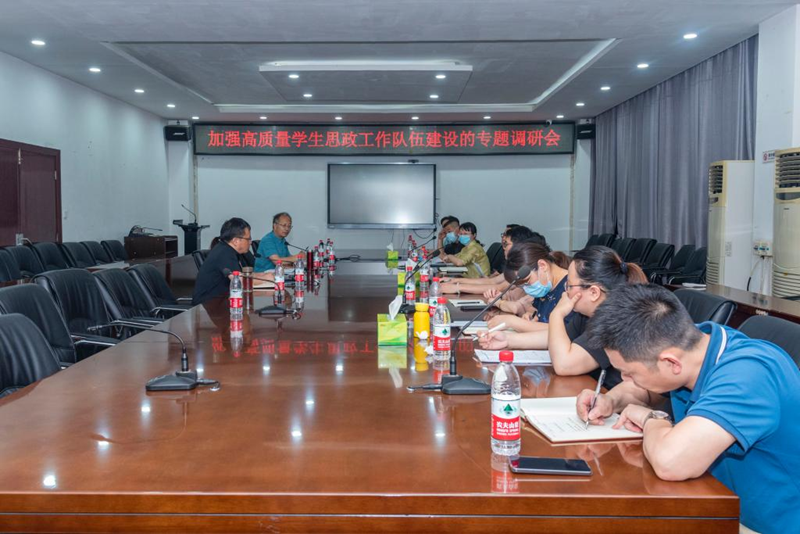 为贯彻落实习近平新时代中国特色社会主义思想主题教育相关要求,把开展主题教育同推动学校事业发展结合起来,6月1日晚上,校长夏能权、副校长彭泽立组织召开学校思政工作队伍建设调研会,学工部、校团委、马克思主义学院负责人及各二级学院党总支书记、副书记参加了此次调研。座谈会由彭泽立主持。