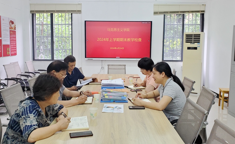 6月24日下午,马克思主义学院2024年上学期期末教学检查在党员活动室进行。教学督导符燕津、李碧高、周学文一行3人对我院本学期教学工作进行了检查。学院院长王芳及各教研室主任、教学秘书陪同检查。