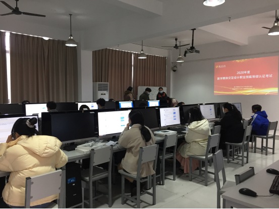 为积极响应教育部《关于在院校实施“学历证书+若干职业技术技能等级证书”制度试点方案》文件精神,推进1+X数字媒体交互设计试点项目的实施,实现训育结合,推动三教改革,2021年1月10日,校企合作组织的“1+X”数字媒体交互设计职业技能等级(中级)证书认证考试圆满完成。