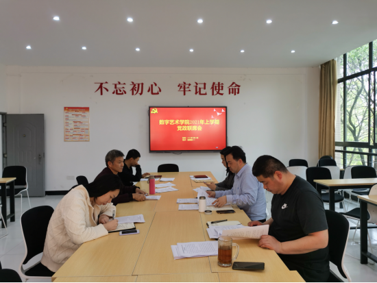 3月26日下午,数字艺术学院在逸美楼311召开党政联席会议,党总支书记郭龙华、副院长燕晓山、副书记杨乐乐等党政班子成员参加,会议由燕晓山主持。