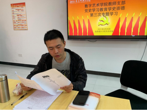 2021年5月25日下午,在数字艺术学院党员活动中心,教师支部党员参加党史学习教育学史崇德第三次专题学习,会议由党支部书记钟令青主持,全体教师支部党员积极参加。