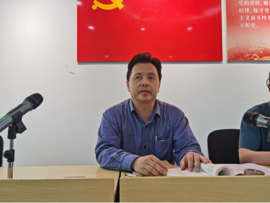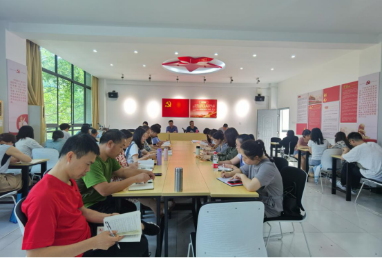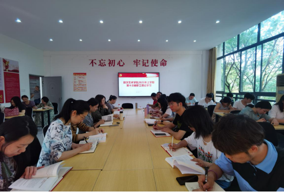 6月1日下午,数字艺术学院组织全体教职工和在校学生党员在逸美楼313进行本学期第十次理论学习。本次学习由学院副院长燕晓山主持。党总支书记郭龙华组织集中学习。