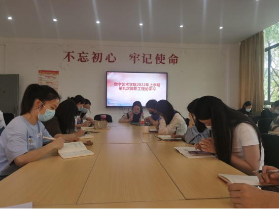 4月26日下午,数字艺术学院在逸美楼313组织全体教职工进行本学期第九次理论学习。本次学习由学院党总支副书记杨乐乐主持,由党总支书记曾正辉领学。