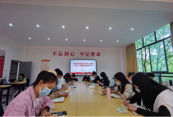 5月17日下午,数字艺术学院在逸美楼313组织全体教职工进行本学期第十二次理论学习。本次学习由学院党总支副书记杨乐乐主持,党总支书记曾正辉领学。