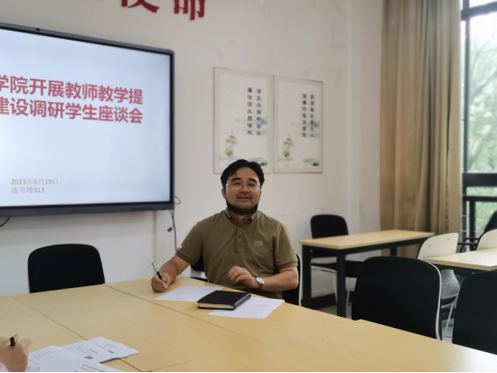 各班代表根据教师教学提升问卷和学风建设调查问卷相关问题,围绕学院教师教学提升和学风建设等方面进行踊跃发言。大家既充分肯定和支持学校的各项管理工作,也结合实际提出存在的问题,各抒己见,现场气氛轻松融洽。针对同学们在学习和生活中遇到的问题和困惑,与会的各位老师认真倾听、详细记录。座谈会上,邱学文积极回应和详细解答同学们提出的问题,总结了同学们提出的的意见和建议。