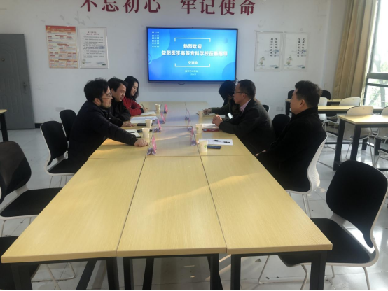 会中,医学高等专科学校教务处处长陈铁军对我院的接待表示感谢。并就该校的教学领域、教学环境、学生成长等各方面作了详细介绍。