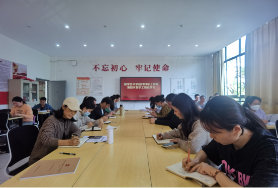 4月23日,数字艺术学院组织全体教职工在逸美楼313进行本学期第四次理论学习。本次理论学习由学院党总支青年委员徐萍领学。