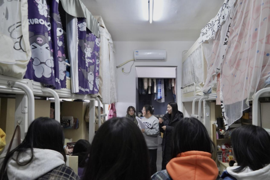 为进一步推进数学艺术学院党团工作站工作的开展,充分发挥党组织的战斗堡垒作用和学生党员的先锋模范作用,扩大党在青年大学生中的影响,2024年12月23日下午,学院学生党支部组织开展了“倾听新声,宿说美好”党员进寝室活动。