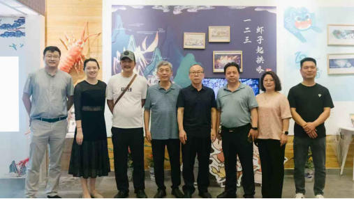 益阳九三学社常务副主委李序曲(左五)、益阳市著名书法家盛景华(左四)、《益阳故事》地方自媒体博主彭国兴(左三)等嘉宾与数字艺术学院院长燕晓山(右三)、副院长刘杨(左二)在展区一起合影